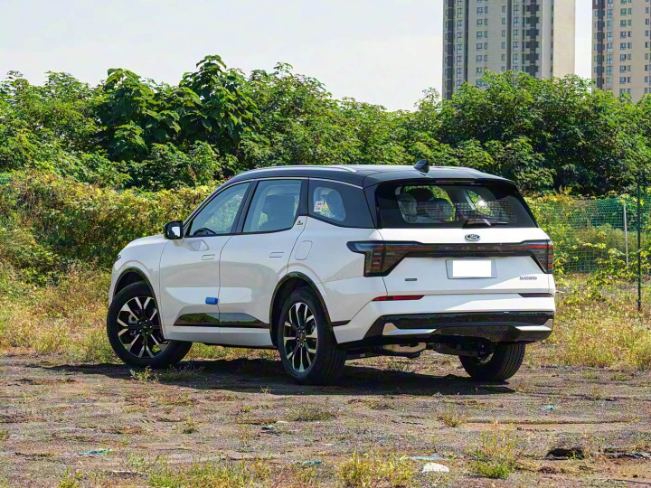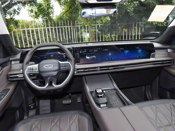 我们首先来看新车的外观方面,前脸采用福特标志性龙鳞格栅设计,黑色矩阵中网与贯穿式LED日行灯形成视觉张力。格栅内置主动开闭系统,可在高速行驶时自动关闭以降低风阻。分体式大灯组采用全LED光源,顶配车型配备自适应远近光功能。新增钛空灰车漆,强化运动属性。前包围两侧的导流槽并非装饰,实际可优化气流降低风噪。