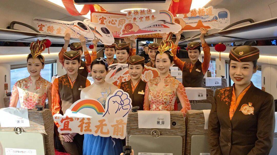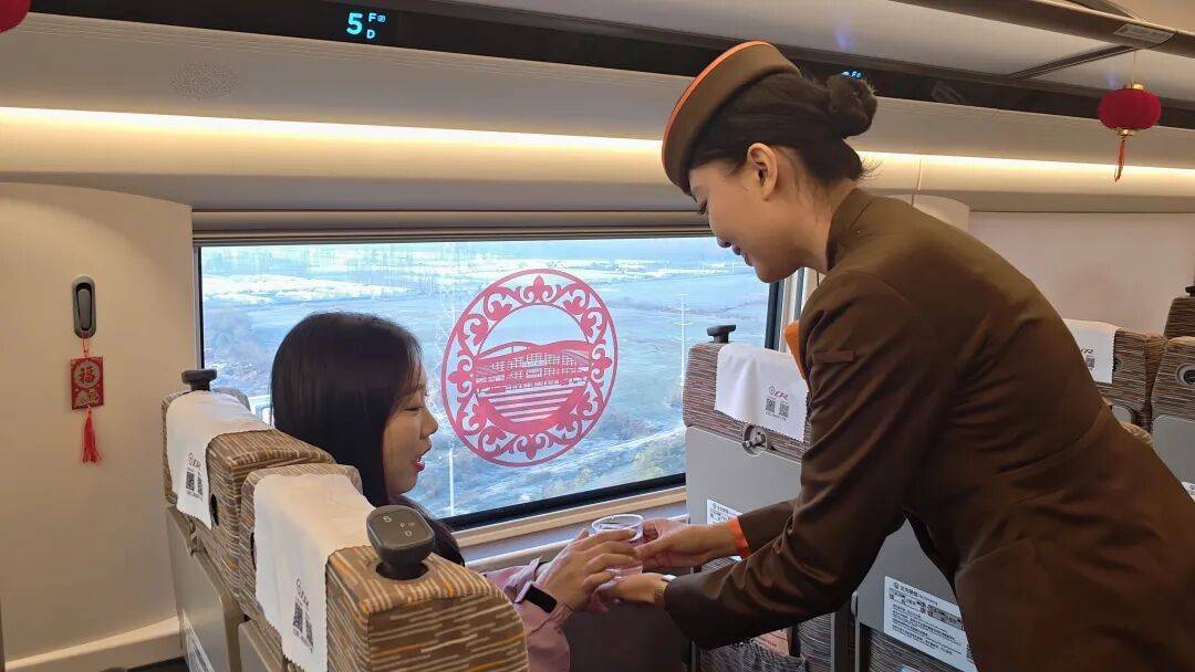 列车疾驰,如一束银光划过江汉平原的田野与河川。窗外景致飞掠,车厢内却暖意融融——武汉客运段的乘务员们正以歌声与互动,为这趟首发之旅注入轻盈的欢愉。